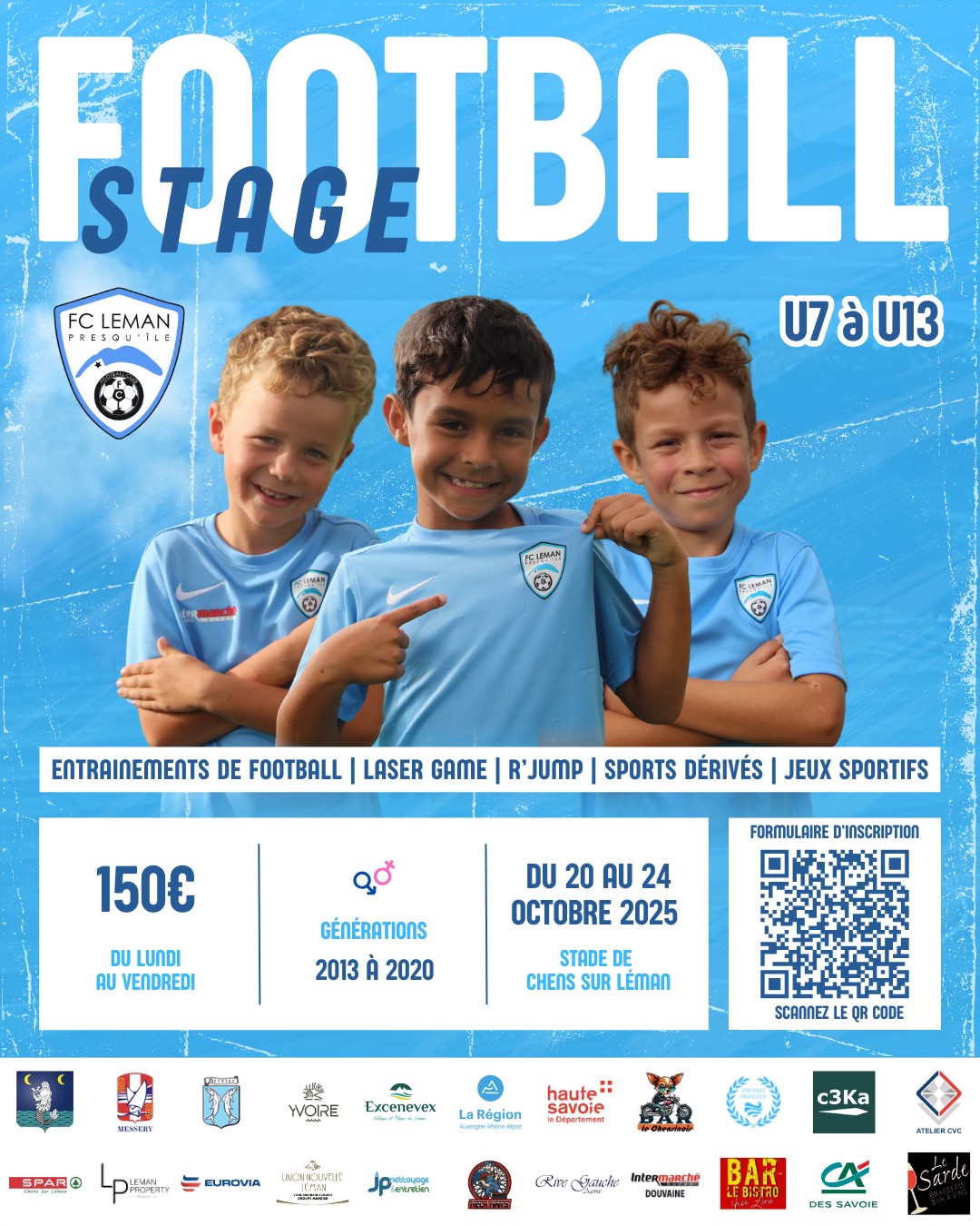 Le Football Club Léman Presqu’île organise une semaine de stage football pendant les vacances d’Automne, du lundi 20 au vendredi 24 octobre 2025 au stade de Chens sur Léman.